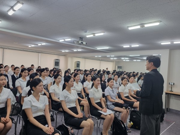 [광주=한국항공뉴스] 광주지역 1등 항공입시 전문 교육기관인 플라잉크루 학원에서 대한항공 수석사무장 출신이자 디지털서울문화예술대학교 교수인 홍영식 교수의 특별 강의가 열렸다.