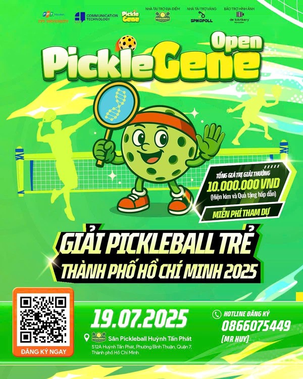 이번 캠페인의 시작은 오는 2025년 7월 19일, 호찌민시 7군 후인떤팟 피클볼 코트에서 열리는 'PickleGene Open – 호찌민시 청년 피클볼 토너먼트 2025'이다. 남자복식, 여자복식, 혼합복식 세 가지 부문으로 나눠 진행되며, 참가비는 전액 무료다. 총상금 1천만 동(VND, 현금 및 후원 물품)이 걸려 있어 젊은 선수들의 도전을 응원하고 건강한 경쟁 문화를 조성할 계획이다.