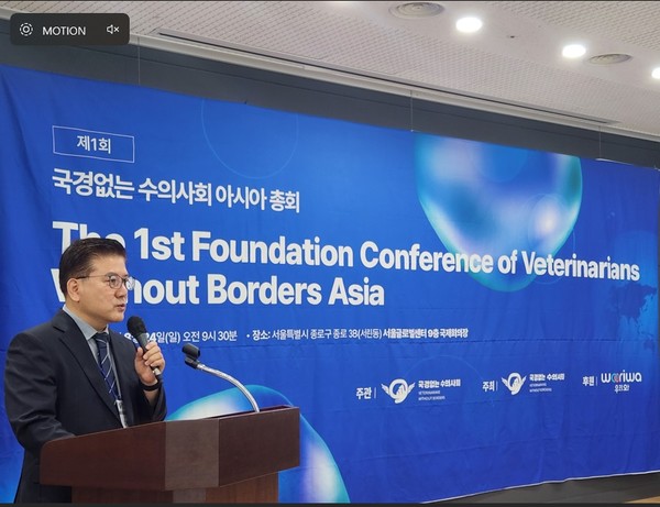 비영리 민간단체 '국경없는 수의사회(대표 김재영)와 이인형 준비위원장(서울대학교 산업동물임상교육연수원장)'가 지난 24일 서울 종로구 서울글로벌센터에서 '제1회 아시아 국경없는 수의사회 총회'를 성공적으로 개최하고, '아시아 국경없는 수의사회'의 공식 창립을 선언하며 수의 협력의 새로운 지평을 열었다.