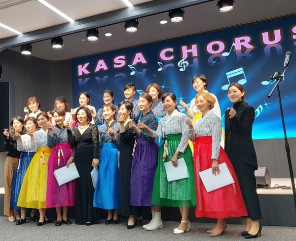 이날 행사는 이효숙(18기) 회원의 독창과, 한현희(37기) 회원의 라인댄스, 서명신(44기) 회원 오카리나 연주에 이어, 3곡의 코러스 합창이 이어졌다. 합창으로 선정된 곡은 그대있는 곳까지(Erest Tu), 아름다운 세상, 그리고 이태원참사 희생자들을 위한 추모곡으로 ‘천개의 바람이 되어’로 그 의미를 더했다. 이날 공연에 참여한 합창단원을 위한 의상은 실용성 갖춘 생활한복 ‘아띠한복(대표 서정남)에서 협찬했으며, 앞으로도 코러스단의 봉사활동으로 더 아름다운 세상에 기여하는 KASA가 되는 것이 목표라고 엄기혜(50기)회장은 포부를 밝혔다.